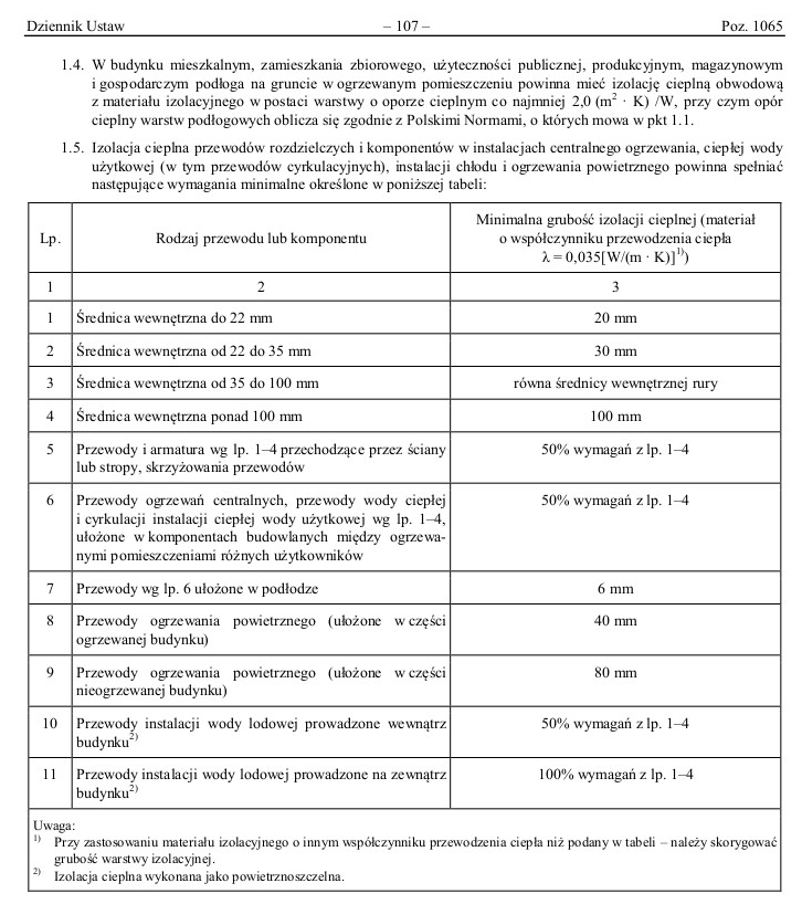 Oczywiście aby zużycie energii elektrycznej (cieplnej) było na racjonalnie niskim poziomie (tj. zgodnie z §328 „rozporządzenia 75″ pt. Warunki techniczne jakim powinny odpowiadać budynki i ich usytuowanie”) instalacja ciepłej wody użytkowej powinna być wykonana prawidłowo. Za prawidłowe w tym zakresie uznaje się spełnienie warunków wskazane w tabeli do Załącznika nr 2 w/w rozporządzenia, z uwzględnieniem Polskiej Normy PN-B-02421.