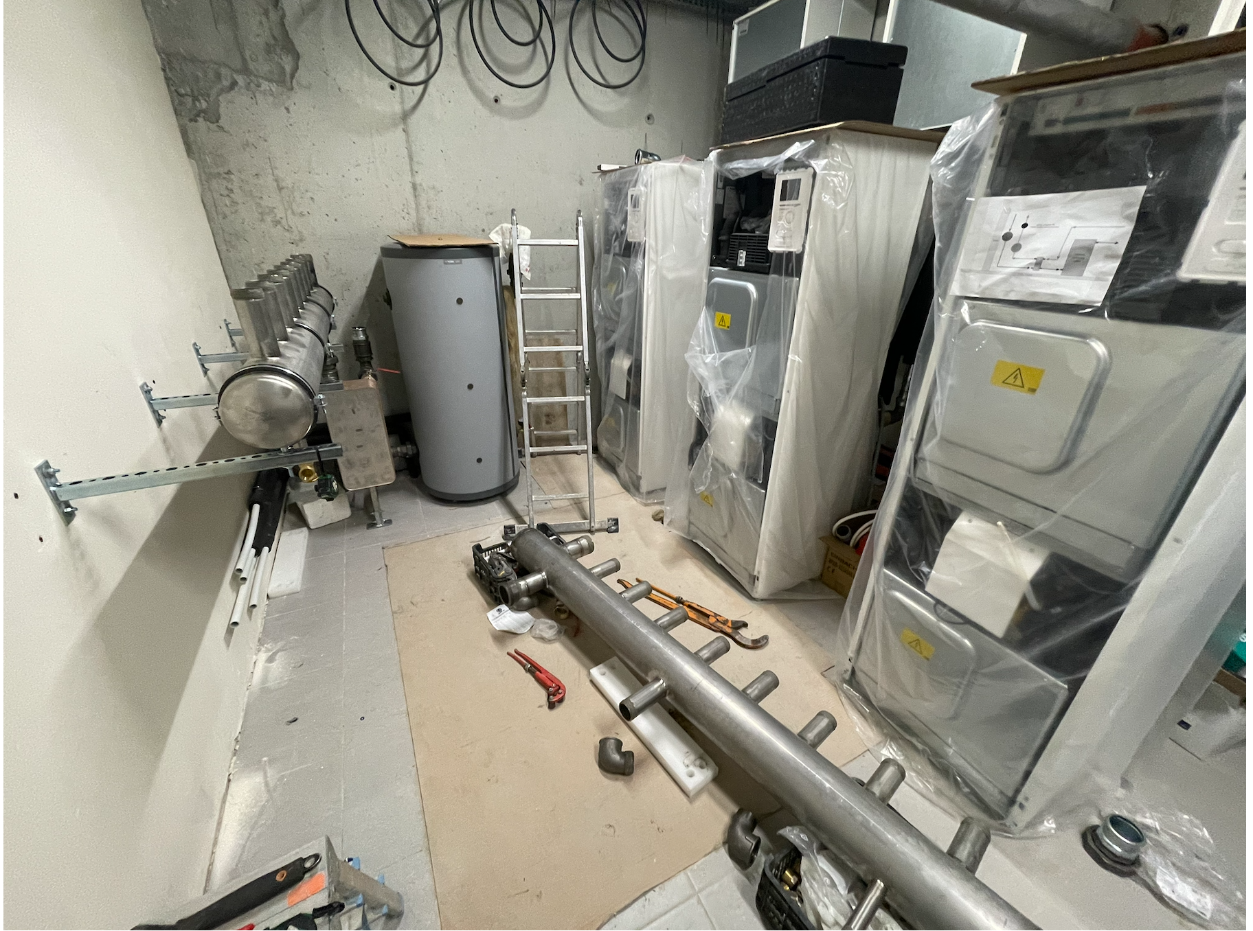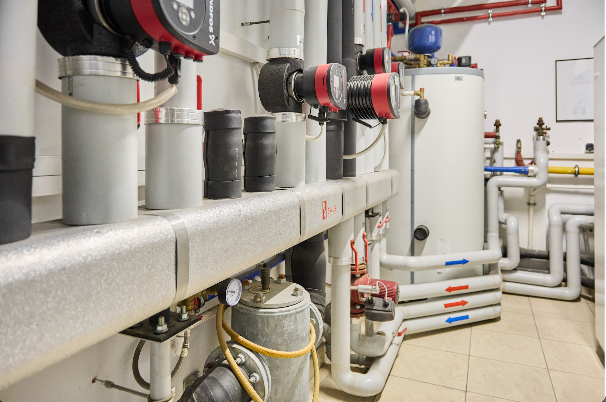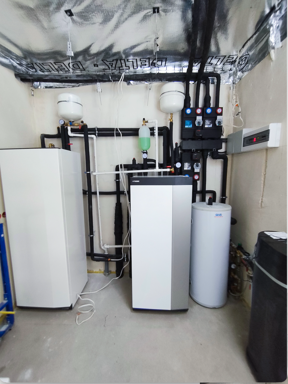 Natomiast w przypadku budownictwa jednorodzinnego, gdzie mamy do czynienia z budynkami mieszkalnymi o powierzchni ogrzewane / chłodzonej od stu-kilkudziesięciu do kilkuset metrów kwadratowych, zasadnym jest wykonanie rozwiązania technicznego nazwanego „technologia kotłowni”. Dzięki niemu mamy możliwość odpowiedniego doboru pomp obiegowych, zdefiniowania różnych temperatur wody kotłowej dla odmiennych instalacji odbiorczych – czy to ze względu na rodzaj (grzejniki płytowe / ogrzewanie podłogowe) czy też ze względu na wymagania danej strefy grzewczej ( pomieszczenia o wymaganej co do zasady wyższej temperaturze pokojowej od tych z niższą).