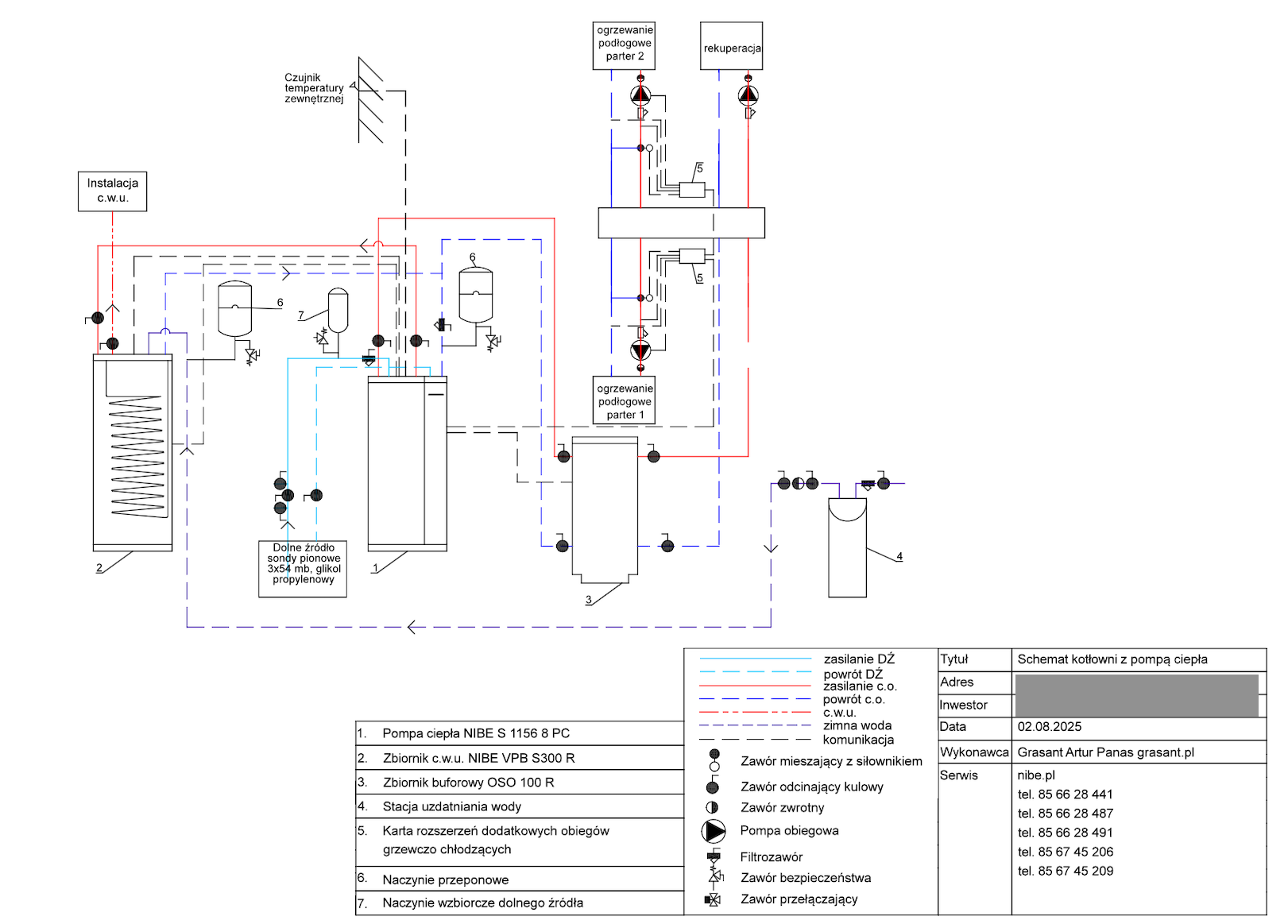2 – rozdzielacz obiegów grzewczych / chłodzących,